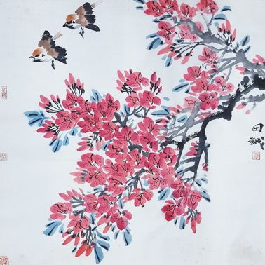 田诚《鸟语花香》4尺斗方