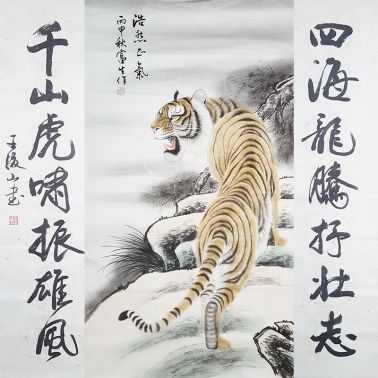 王浚山/周富生联袂创作《工笔虎+楹联》
