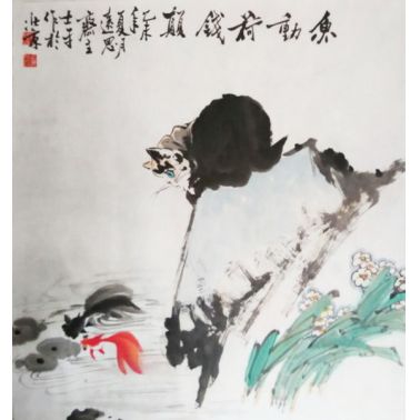 向士平《鱼动荷钱颠》68×68